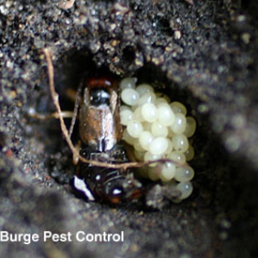 Eggs are laid in small batches inside a chamber two to three inches beneath the surface. Moisture is required for the eggs and young. The mother will guard and protect the eggs and the newly hatched young. After the first molt the young will leave them to fend for themselves.